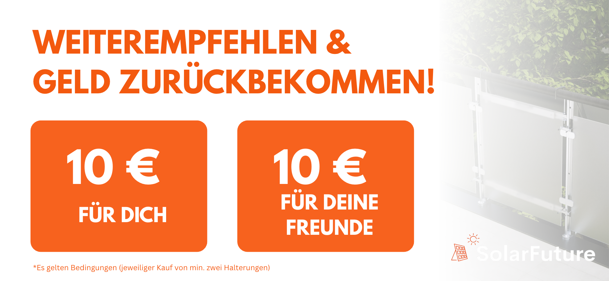 4. Sobald deine empfohlene Person erfolgreich bestellt hat (mind. 2 Halterungen, kein Widerruf innerhalb von 14 Tagen), bekommst du als Dankeschön ebenfalls 10 € per Erstattung oder 15€ als Gutschein bei uns zurück.